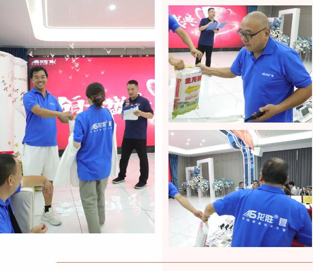 接下来就是本场会议的重头戏了,那就是颁奖环节!以主题“你带单,我送礼,多多益善”,将一轮轮实实在在的奖品颁发给优秀的龙胜管监利水电工程师们?;疃殖》⒎诺睦衿酚校壕反竺?、品牌食用油、龙胜精品热熔器、龙胜前置过滤器以及电动车等。现场气氛瞬间热烈高昂,水电工程师们拿着贴心实用的龙胜大礼,感受到了龙胜管满满的诚意。这不仅是一次简单的颁奖仪式,更是一次与龙胜管建立永恒情谊的盛会。
